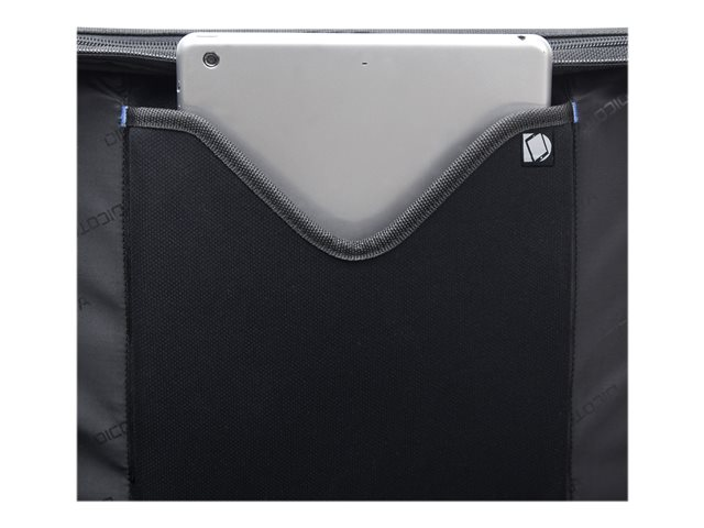La séparation du système fit-all dans le compartiment ordinateur recouvre votre ordinateur, le protège et s'adapte automatiquement. La mousse légère en EVA perforée placée dans le compartiment verrouillable de l'ordinateur, protège parfaitement les angles de votre appareil, avec un énorme gain de poids. Tenue optimale pour votre ordinateur portable dans le compartiment, assurée par le revêtement anti-glisse. Protection idéale pour votre iPad ou tablette dans le compartiment formé en EVA avec doublure extra douce en nylex. Espace de rangement généreux pour une imprimante, un projecteur et des documents dans le compartiment extensible et le compartiment à fermeture éclair. La poche frontale avec porte-clé et compartiments de rangement organise vos ustensiles personnels et offre de la place pour d'autres accessoires mobiles. Le rembourrage ergonomique du dossier, les sangles réglables en longueur, la poignée confortable et la lanière de fixation assurent un confort de port optimal. Compartiment à fermeture éclair dissimulé pour papiers d'identité. Fond de la sacoche en matière étanche.
