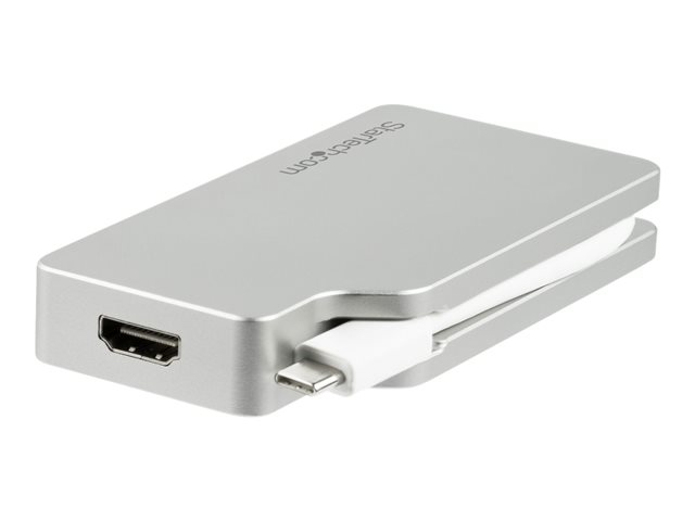 StarTech.com Adaptateur de voyage audio/vidéo 4 en 1 - USB Type-C vers VGA, DVI, HDMI ou Mini DP - 4K (CDPVGDVHDMDP) - Adaptateur vidéo - 24 pin USB-C mâle pour HD-15 (VGA), DVI-D, HDMI, Mini DisplayPort femelle - 10.5 cm - argent - support 4K, actif