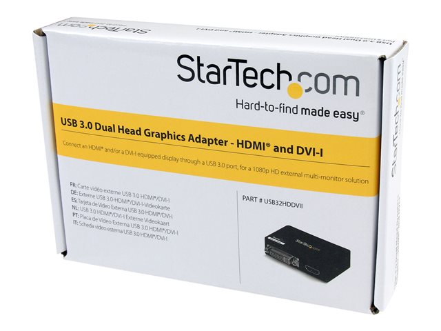 StarTech.com Adaptateur vidéo multi-écrans USB 3.0 vers HDMI et DVI - Carte graphique externe - M/F - 2048x1152 - Adaptateur vidéo - Conformité TAA - USB Type B femelle pour DVI-I, HDMI femelle - noir - prise en charge de 2048 x 1152 à 60 Hz - pour P/N: HDDVIMM3, HDMM12, HDMM15, HDMM1MP, HDMM2MP, HDMM3, HDMM3MP, HDMM50A, HDMM6, HDPMM50 USB32HDDVII