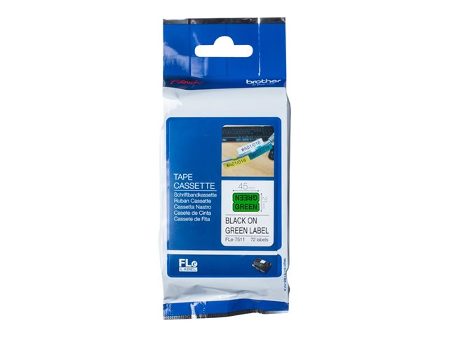 Brother - Polyester - noir sur vert - 21 x 45 mm 72 étiquette(s) (1 rouleau(x) x 72) Étiquettes en forme découpée - pour P-Touch PT-D800W, PT-P900W, PT-P950NW FLE7511