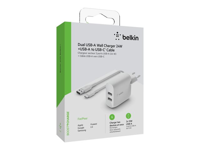 Belkin BOOST CHARGE - Adaptateur secteur - 24 Watt - 2 connecteurs de sortie (USB) - blanc WCE001VF1MWH