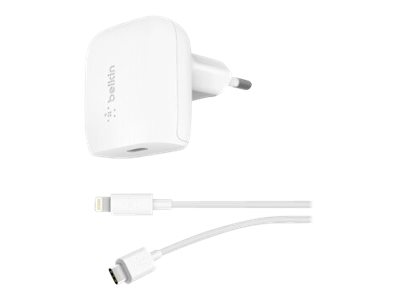 Belkin BOOST CHARGE Wall Charger - Adaptateur secteur - 18 Watt - 3.6 A - Fast Charge (USB-C) - sur le câble : Lightning - pour Apple iPad/iPhone/iPod (Lightning)