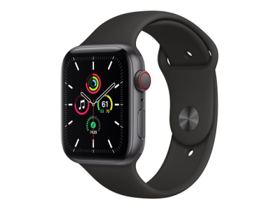 Apple Watch SE (GPS + Cellular) - 44 mm - espace gris en aluminium - montre intelligente avec bande sport - fluoroélastomère - noir - taille du bracelet : S/M/L - 32 Go - Wi-Fi, Bluetooth - 4G - 36.36 g