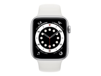 Apple Watch Series 6 (GPS) - 44 mm - aluminium argenté - montre intelligente avec bande sport - fluoroélastomère - blanc - taille du bracelet : S/M/L - 32 Go - Wi-Fi, Bluetooth - 36.5 g M00D3NF/A