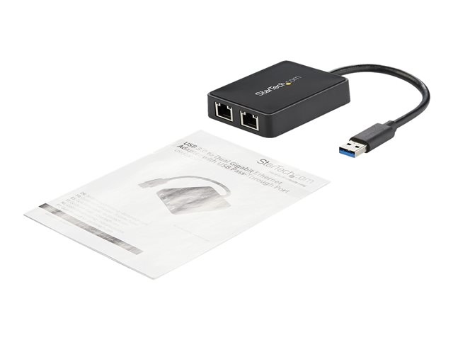 Adaptateur USB 3.0 vers Gigabit Ethernet à Deux Ports avec Port USB - 10/100/100 - Adaptateur Réseau NIC Gigabit LAN USB (USB32000SPT).