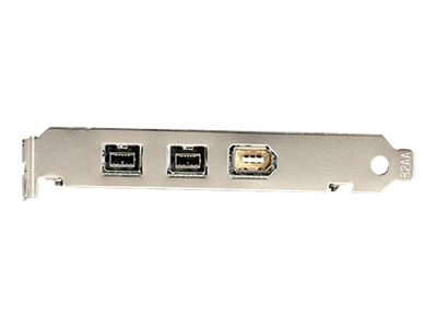 Cette carte FireWire 3 ports PCI1394B_3 transforme un slot PCI en 2 ports FireWire 800 (IEEE 1394b) et 1 port FireWire 400 (IEEE 1394a), offrant ainsi une solution économique vous permettant de connecter des périphériques FireWire 800 et des FireWire 400 plus anciens sur votre ordinateur de bureau. La carte adaptateur offre une solution polyvalente, elle est compatible avec les slots PCI 5 V et 3,3 V et les environnements d'exploitation 64-bit et 32-bit. Elle permet ainsi de créer un centre multimédia numérique haute vitesse pour ordinateur portable ou de connecter des périphériques FireWire exigeants, tels que les disques durs portables, les caméscopes vidéo numériques, les appareils photo numériques et les lecteurs CD-RW/DVD-RW. Cette carte adaptateur de haute qualité est conçue pour fournir des connexions FireWire 800 et FireWire 400 fiables, qui offrent respectivement des vitesses de transfert de données de 800 Mb/s et 400 Mb/s (un slot PCI 64 bits est requis pour obtenir une vitesse de transfert de données de 800 Mb/s). Le modèle PCI1394B_3 bénéficie de la garantie à vie StarTech.com et de l'assistance technique à vie gratuite.