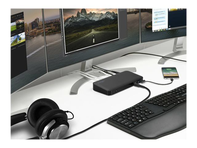 Si vous possédez une Surface équipée d'USB-C et que vous avez besoin de travailler sur plusieurs écrans, la SD4845P est la station d'accueil qu'il vous faut. Un unique câble USB-C vous permet de connecter en Plug & Play jusqu'à trois moniteurs 1080p sans aucun pilote, dongle ou adaptateur. Ce même câble vous permet de recharger votre ordinateur portable avec une alimentation PD 85 W, de connecter votre souris, votre clavier et vos autres accessoires USB. Grâce à une grande vitesse de transfert de données de 10 Gbits/s, votre productivité ne connaîtra jamais de baisse de régime. Consultez le tableau de compatibilité pour voir les appareils pris en charge.
