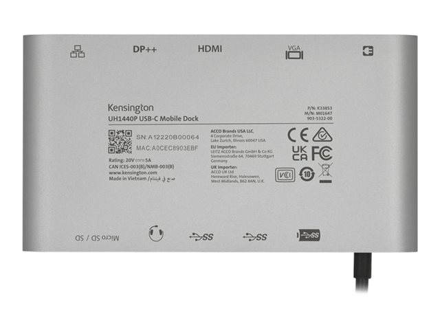 Kensington UH1440P - Station d'accueil - USB-C 3.2 Gen 1 / Thunderbolt 3 / Thunderbolt 4 - VGA, HDMI, DP - 1GbE K33853WW