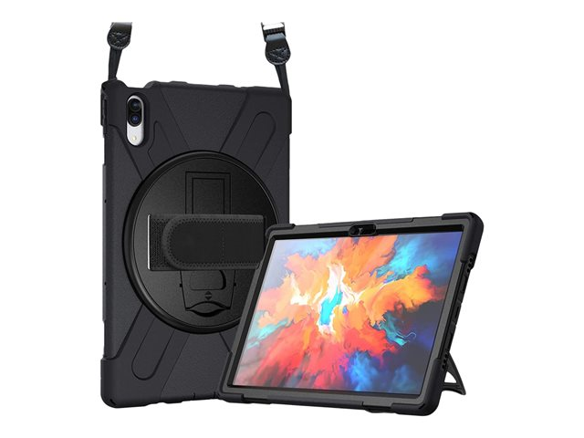 Coque renforcée avec bandoulière, poignée rotative et pied support pour Lenovo Tab P11 Pro.