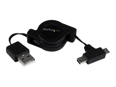 StarTech.com Câble USB 2.0 Rétractable - USB vers Mini USB / Micro USB - Câble Mini / Micro USB à Enrouleur - Donnée et Charge - M/M 76 cm - Câble USB - USB (M) pour mini USB type B, Micro-USB de type B (M) - 76.2 cm - rétractable - noir - pour P/N: USB2PCARBK, USB2PCARBKS, USBEXTAA10BK, USBEXTAA6BK, USBLT2PCARW, USBUB2PCARB