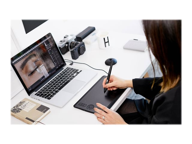 Tirez le meilleur parti de votre logiciel de création grâce à vos raccourcis favoris présélectionnés. La tablette Intuos Pro va même jusqu'à détecter le logiciel que vous utilisez et vous propose des sélections optimales. Accédez rapidement à tous vos raccourcis via les ExpressKeys personnalisables et le Touch Ring. Restez concentré sur votre tâche grâce à l'affichage Express View et le menu radial. Découvrez la navigation intuitive d'un simple toucher du doigt: explorez, zoomez, pivotez et naviguez naturellement d'un simple geste, ou créez vos propres raccourcis multi-touch.