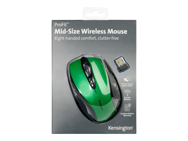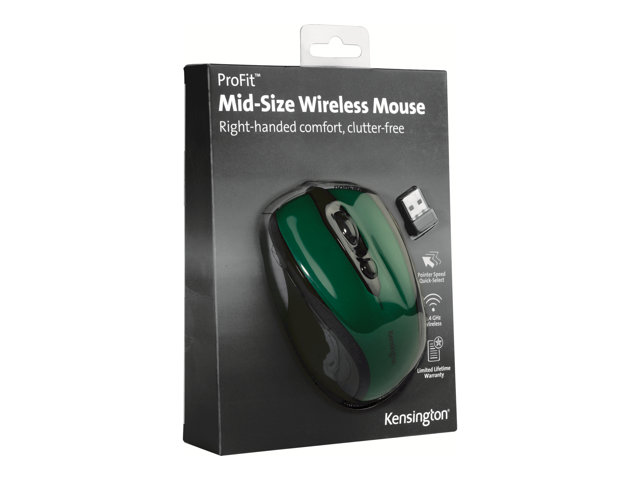 Kensington Pro Fit Mid-Size - Souris - pour droitiers - optique - sans fil - 2.4 GHz - récepteur sans fil USB - Vert émeraude