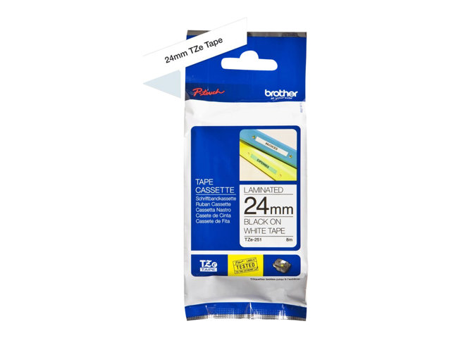 Brother TZeS251 - Bande adhésive laminée très résistante - noir sur blanc - Rouleau (2,4 cm x 8 m) 1 rouleau(x) - pour P-Touch PT-3600, 9700, 9800, D600, E500, E550, H500, P700, P750; P-Touch EDGE PT-P750 TZE-S251