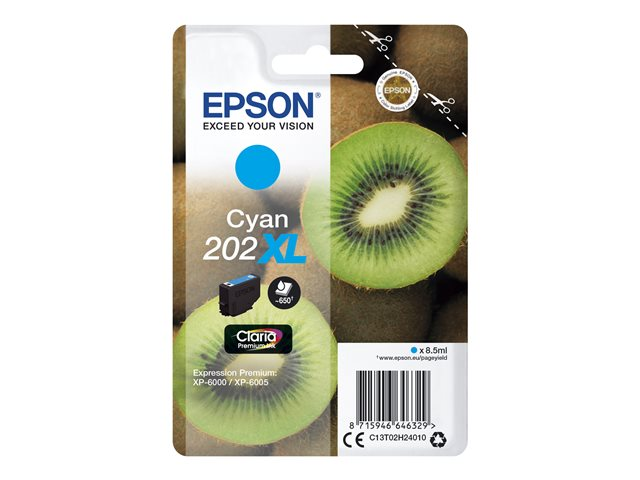 Epson 202XL - 8.5 ml - haute capacité - cyan - original - blister - cartouche d'encre - pour Expression Premium XP-6000, XP-6005, XP-6100, XP-6105 C13T02H24010
