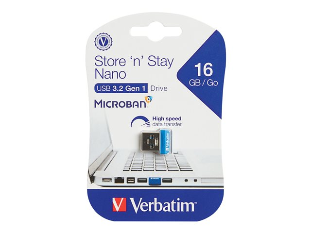 Verbatim Store 'n' Stay NANO - Clé USB - 16 Go - USB 3.0 - bleu