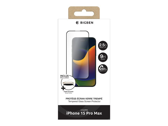BIGBEN Connected - Protection d'écran pour téléphone portable - + SmartFrame - 2.5D - verre - couleur de cadre noir - pour Apple iPhone 15 Pro Max PEGLASSIP15PM