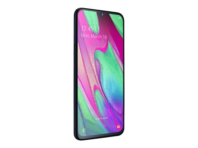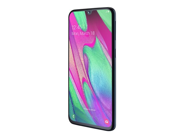Samsung Galaxy A40 - Enterprise Edition - 4G smartphone - double SIM - RAM 4 Go / Mémoire interne 64 Go - microSD slot - écran OEL - 5.9" - 2340 x 1080 pixels - 2x caméras arrière 16 MP, 5 MP - front camera 25 MP - noir SM-A405FZKDE27