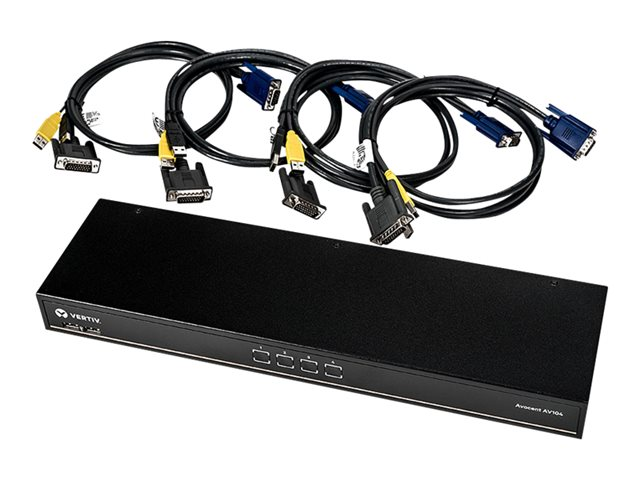 Avocent AutoView AV104 - Commutateur KVM - 4 x KVM port(s) - 1 utilisateur local - de bureau, Montable sur rack - CA 100 - 240 V - avec 4 x câbles 26 broches vers VGA