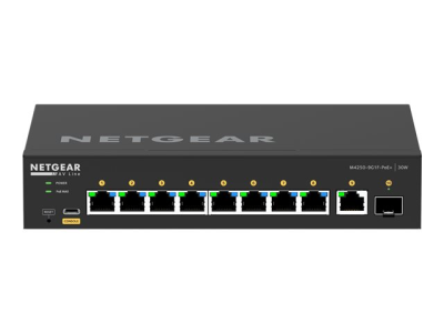 NETGEAR M4250-9G1F-PoE+ - Commutateur - C3 - Géré - 8 x 10/100/1000 (8 PoE+) + 1 x 10/100/1000 + 1 x Gigabit SFP - flux d'air côte à côte - Montable sur rack - PoE+ (110 W)
